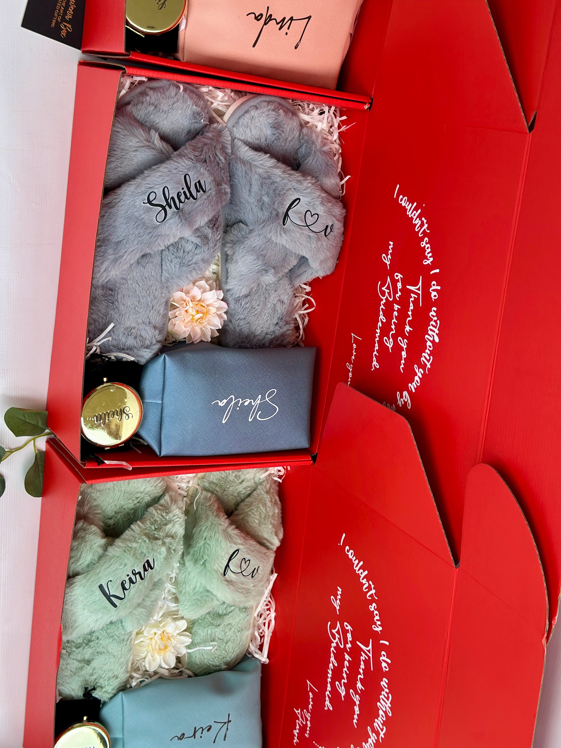 This isn't just a thank youβit's a celebration of friendship and gratitude. The personalized slippers and custom ribbon make each gift feel unique and special, while the practical beauty essentials ensure they'll think of your special day every time they use them. Perfect for getting ready together on the wedding day or as a heartfelt thank you after.